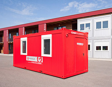 • Wohn-, Büro- und Sozialbaracken für Baustelleneinrichtungen in ein- oder zweigeschossiger Bauweise